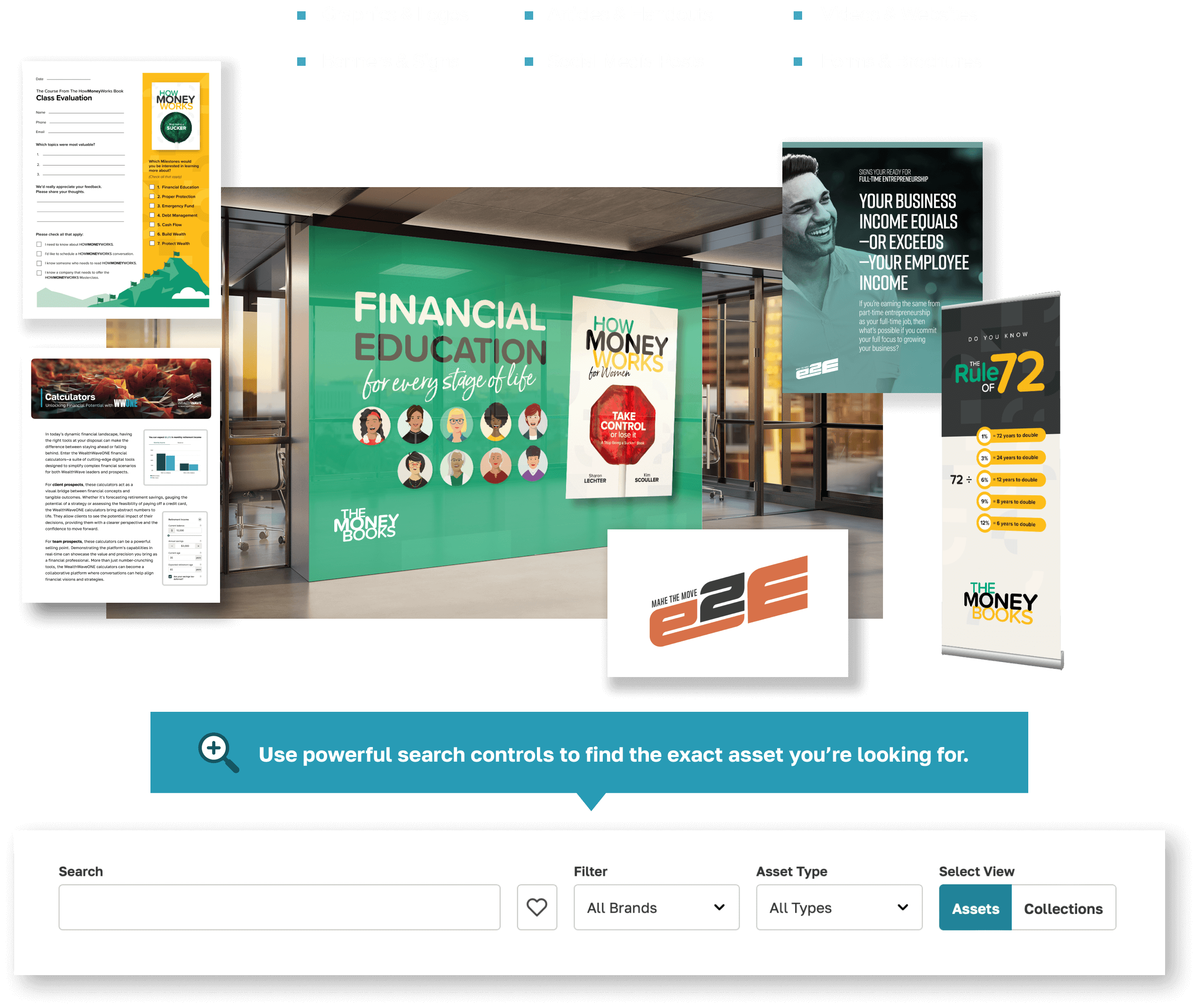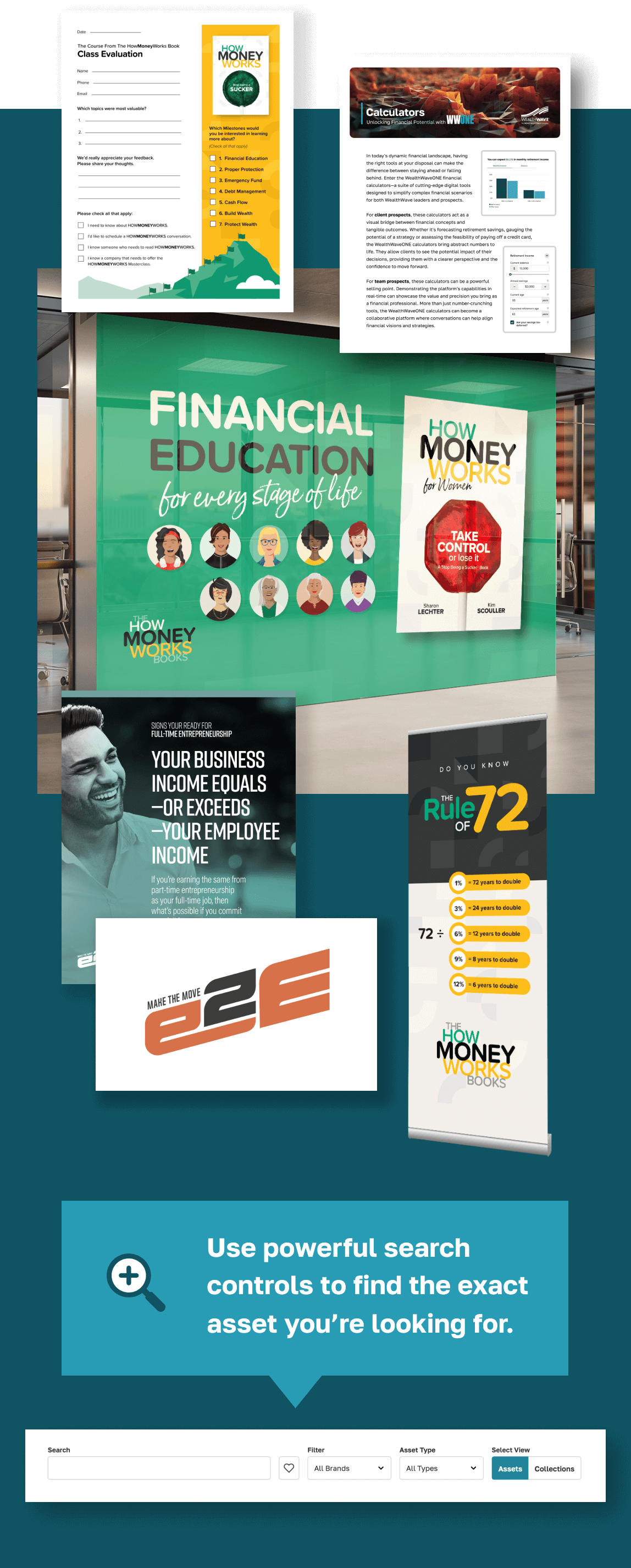 سيحتاج كل قائد في WealthWave يقوم ببناء فريقه وعملائه إلى مجموعة متنوعة من الأصول المعتمدة للعلامة التجارية والامتثال. من المواد التسويقية والنشرات إلى منشورات وسائل التواصل الاجتماعي والشعارات واللافتات - يمكنك الاستفادة من مكتبتنا الواسعة والقابلة للبحث في المحتوى الجاهز للاستخدام في اللحظة التي تحتاج إليها.